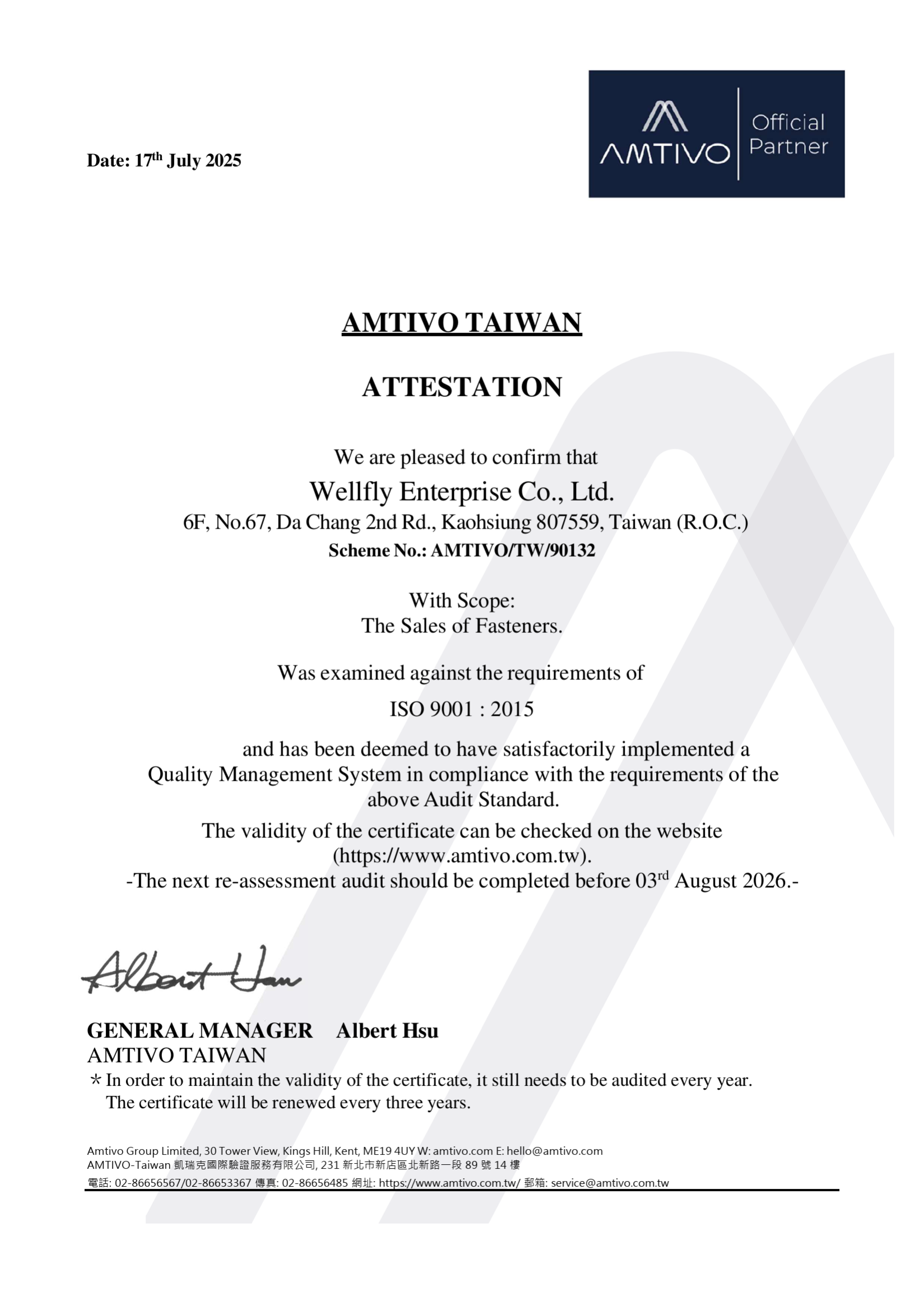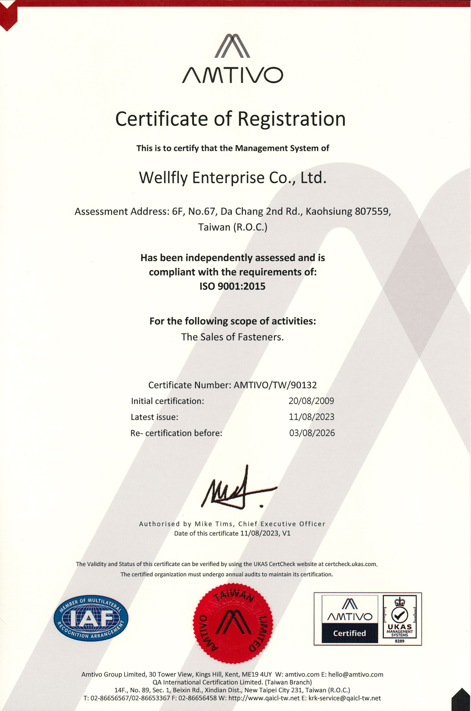 WELLFLY ISO 9001:2015 ATTESTATION (2025-2026)